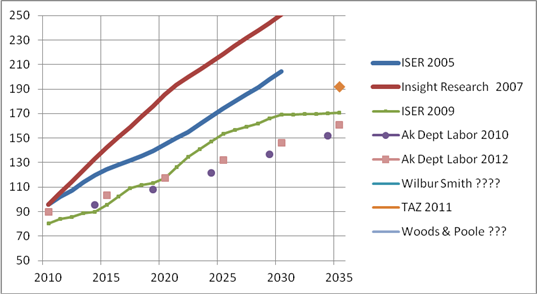 In May, 2013 financial analyst Jamie Kenworthy made a brief presentation to the AMATS Technical Advisory Committee (TAC) asking that by end of 2013, the TAC produce a TAZ map for 2035 Anchorage Transportation Plan that includes a tolled Knik Arm Crossing. The updated 2035 AMATS TAZ map could then be compared to the new 2035 TAZ data from the new KABATA consultants. This would allow the public and the legislature to come to their own conclusions regarding the reasonableness of the numbers behind KABATA’s expected new financial plan.
